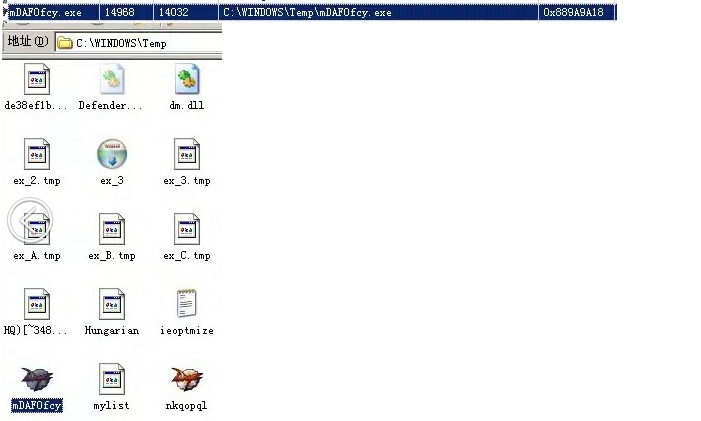2、追踪病毒文件创建过程,发现可疑的自解压包svchost.exe,此程序自动解压后会自我删除。