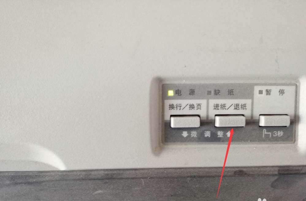 5、如果,暂停已经恢复或者拉杆已经推入还是不能进纸,可以按下进纸/退纸功能键查看是否可以进纸,一般情况下都可以正常恢复使用。